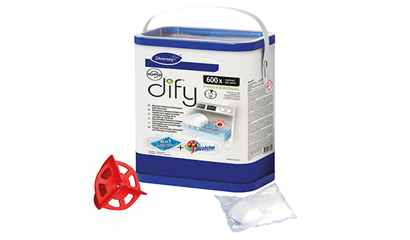 Suma Dify is a specially designed solution for small under-the-counter and front-loading multi-cycle machines that delivers the performance of a professional system without the need for equipment installation.