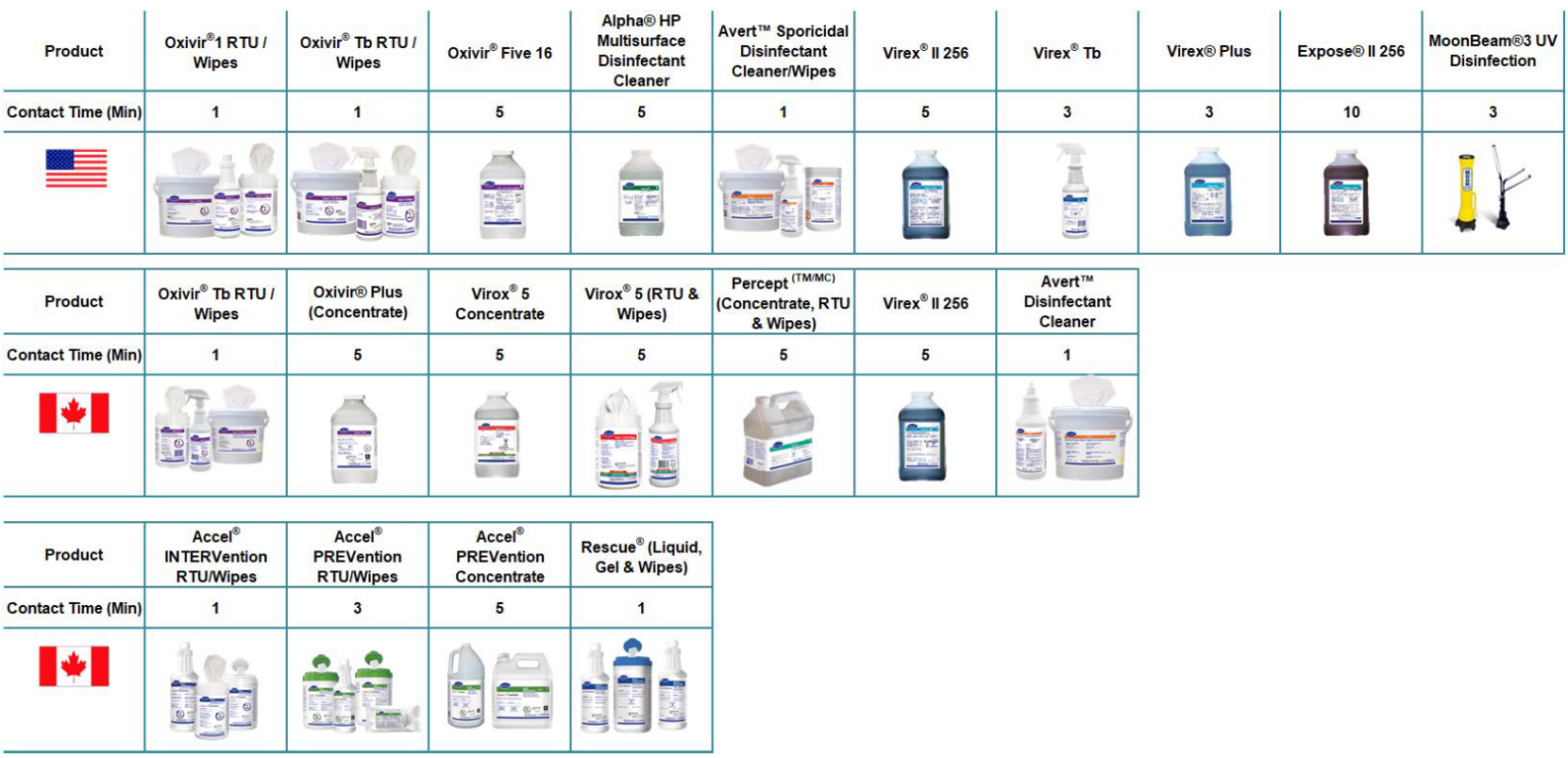 Bloodborne pathogens are enveloped viruses that are susceptible to the following Diversey disinfectants:
