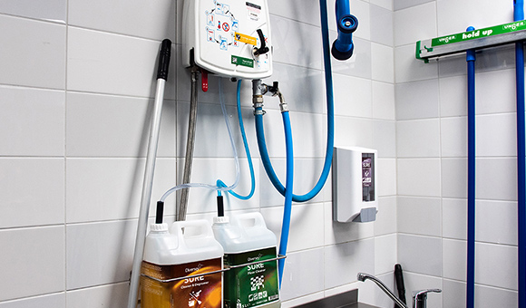 • 100% SURE products used in food service (dishwashing, surface and floor cleaning, and hand care)