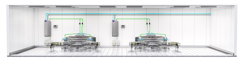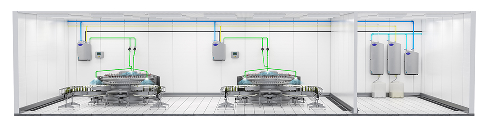 Geautomatiseerde OPC-systemen zijn geschikt voor het reinigen en ontsmetten van grote productiefaciliteiten met complexe, bewegende productie-eenheden, zoals carrouselvullers, transportbanden, kanteltransportbanden, spiraalvriezers, spiraalkoelers, specerijentrommels, trommelsnijmachines en vele andere apparaten. In een geautomatiseerde OPC-installatie wordt het reinigings- en ontsmettingsschuim aangebracht met behulp van een op maat gemaakt verdeelstuk dat op elk apparaat past en elk apparaat bereikt, zodat zelfs de moeilijkst bereikbare plekken tijdens het reinigings- en ontsmettingsproces worden behandeld.