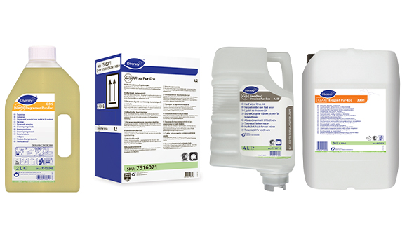 Pur-Eco serisi, SafePack™ ve Revoflow™ sistemleri gibi çeşitli paketleme ve dozaj sistemlerinde ve tüm su koşullarında çalışacak geniş ürün seçenekleriyle son derece etkili temizlik ile, müşterilerinizin beklediği ve hak ettiği deneyimi sunmak için ihtiyacınız olan her şeyi sunar.